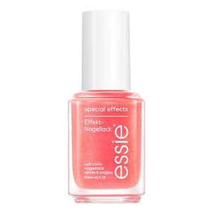 Essie Neglelak. Glitrende Orange med Pink og Guld Effekter er et uundgåeligt valg til din neglesamling. Den metalliske orange farve kombineret med glitrende pink og guldpartikler skaber en spektakulær effekt.