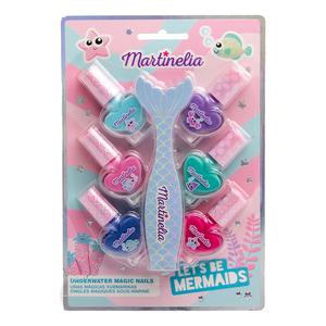 Martinelia Lets Be Mermaids Underwater Magic Nails er et børnevenligt neglesæt i havfruetema Martinelia Lets Be Mermaids Underwater Magic Nails er et kreativt neglesæt til børn. Der elsker farver og leg. Sættet indeholder 6 vandbaserede neglelakker i fl